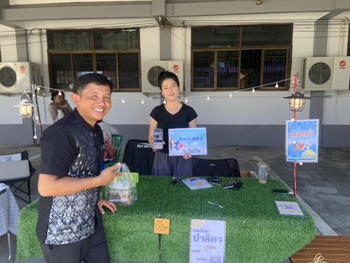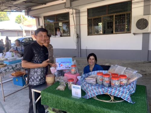 ในการนี้ยังได้เชิญชวน ชม ชิม ช้อป การจำหน่ายผลิตภัณฑ์ OTOP ของดีเมืองม่วงสามสิบ ณ ตลาดนัด คนไทยยิ้มได้ มีบริการชำระผ่านโครงการคนละครึ่งพลัส