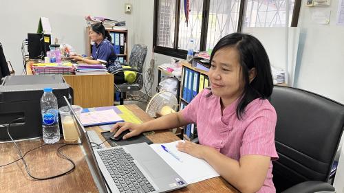 ณ สำนักงานพัฒนาชุมชนอำเภอม่วงสามสิบ จังหวัดอุบลราชธานี