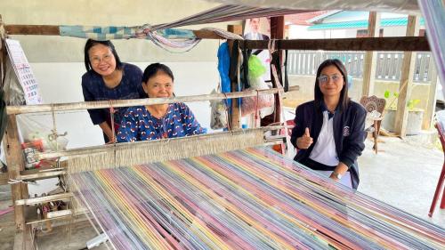 ณ กลุ่มทอผ้าบ้านตำแย หมู่ที่ 11 ตำบลม่วงสามสิบ อำเภอม่วงสามสิบ จังหวัดอุบลราชธานี